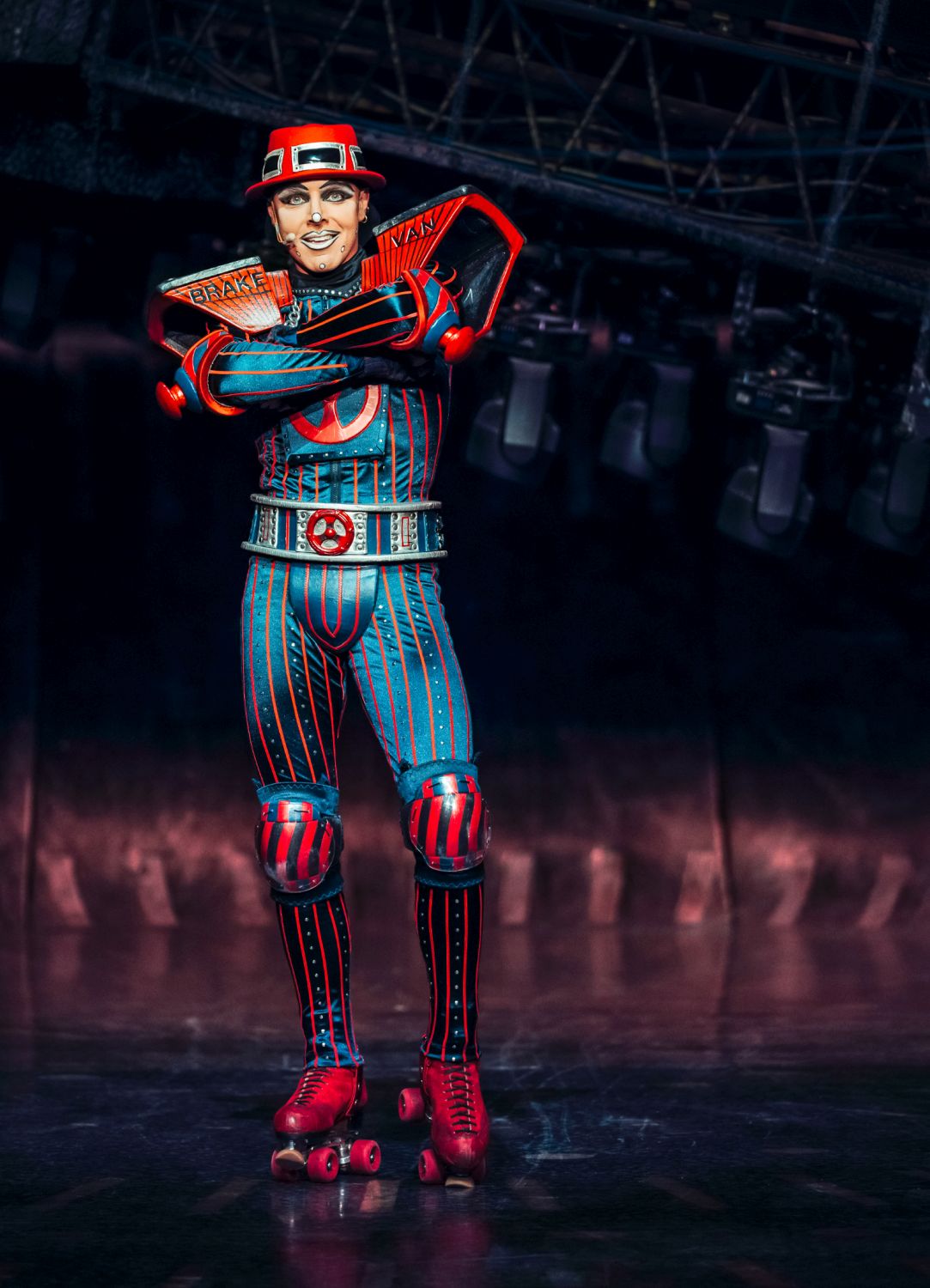 Das Theater ist rundherum auf die fulminante Bühnenshow zugeschnitten. Die Bühne ist 1.100 Quadratmeter groß, ihr Herzstück bildet ein 9 Tonnen schweres Brückenelement, das sich in alle Richtungen schwenken lässt. Die Brücke verbindet die verschiedenen Spielebenen miteinander und erschafft so die Rennstrecke für den Wettstreit der Züge. Die Rollbahn ist insgesamt 280 Meter lang und führt die Darsteller über drei Ebenen mit einem Höhenunterschied von 7,5 Metern. Die Strecke erlaubt den Rollschuhfahrern Geschwindigkeiten von bis zu 60 km/h.